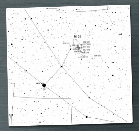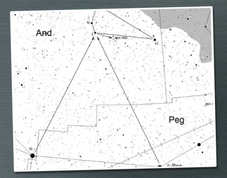 Dafür wandern wir mit dem Fernglas ausgehend vom Stern β-And rund 3,9° nordwestlich