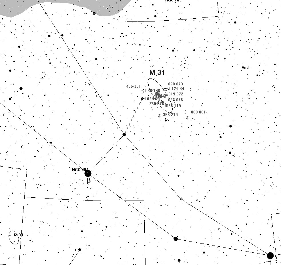 bis zum Stern μ-And. Von dort geht es weitere 2,9° nordwestlich bis wir