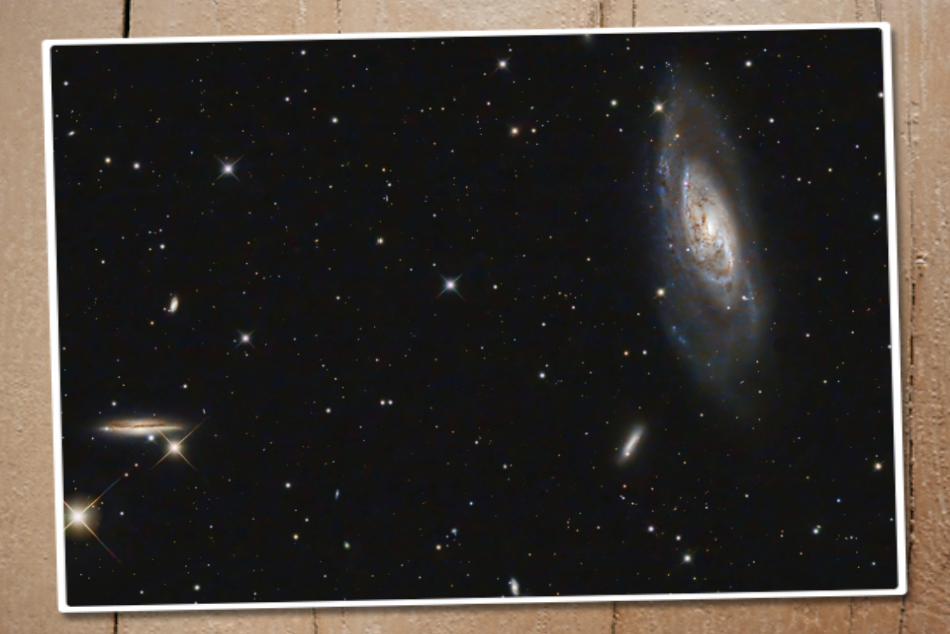 Messier 106 oder NGC 4258 ist eine Balken-Spiralgalaxie. Sie ist etwa 3,5 Millionen Lichtjahre entfernt und hat einen Durchmesser von etwa 80.000 Lichtjahren. Die Galaxy liegt im Sternbild Jagdhunde (Canis Venatici) in der Nähe der Deichsel des Großen Wagen. Die beiden Spiralarme sind durch große Mengen an jungen, massereichen Sternen gekennzeichnet, die in einem bläulichen Licht leuchten. Die Galaxie durchläuft derzeit einen sogenannten »Starburst«, bei dem die Sternentstehungsrate stark erhöht ist. Die nächstgrößere Galaxie im Bild ist NGC4217 und wurde 1788 von Wilhelm Herschel entdeckt.
